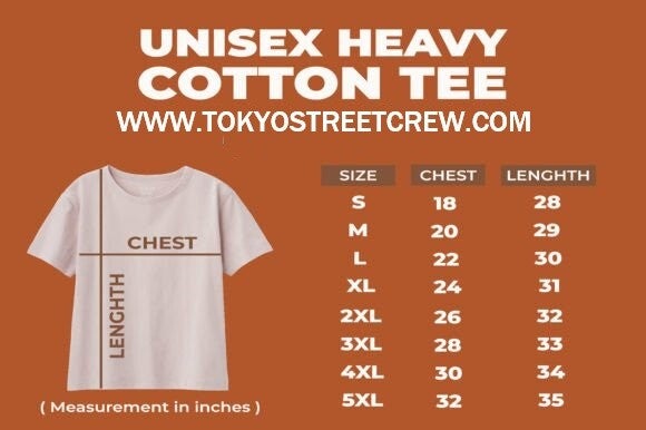 Welcome to the tokyostreetcrew sizing guide. We're here to help you find the ideal fit for your urban car culture gear. Dive into our measurements and tips to ensure comfort and style every time you rock our threads from tokyostreetcrew.ca.